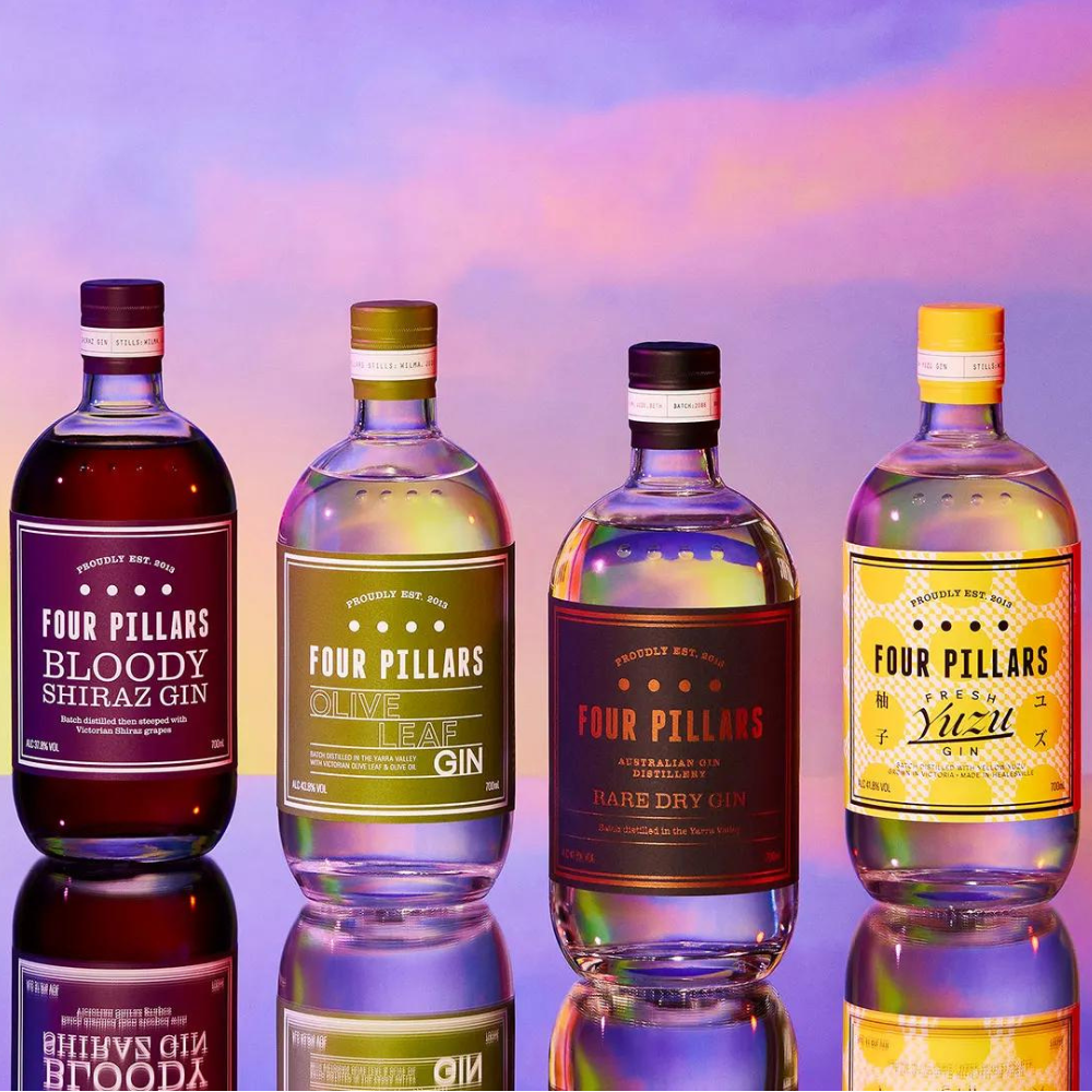 Taste a range of Four Pillars classic gin cocktails using the Rare Dry, Olive Leaf, Spiced Negroni, Bloody Shiraz, and Navy Strength gins, available at bars through Carriageworks.