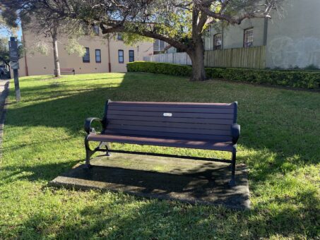 Honestly, I don’t know the artist’s name, but I love the “Break Up Park” bench at Burren Street Reserve in Newtown. It’s simple and effective—you don’t question it.