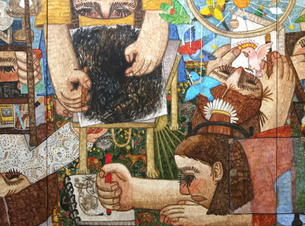 Many artists incorporate their everyday lives and mundane actives into their work, providing a nuanced insight into the simultaneously banal and ever-changing nature of everyday life. Nicole Zhang and Martin Claydon both embody the chaotic, dense, profound, and intricate balance that is experienced within the everyday. Through the medium of figurative painting, both artists are able to convey these complexities, in ways that are concurrently joyful, humorous, macabre and serious.